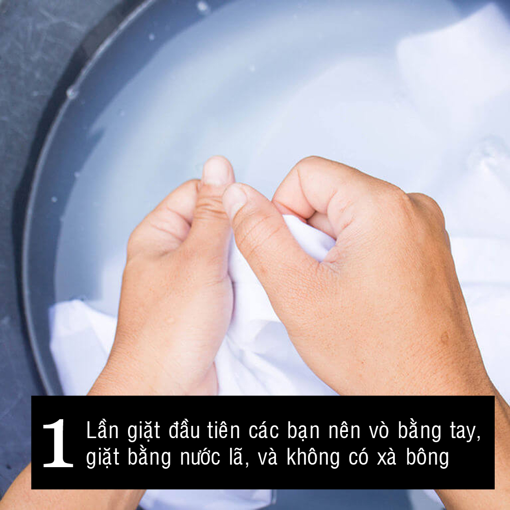 1. Lần giặt đầu tiên bạn hãy vò tay, giặt bằng nước lã và không có xà phòng.