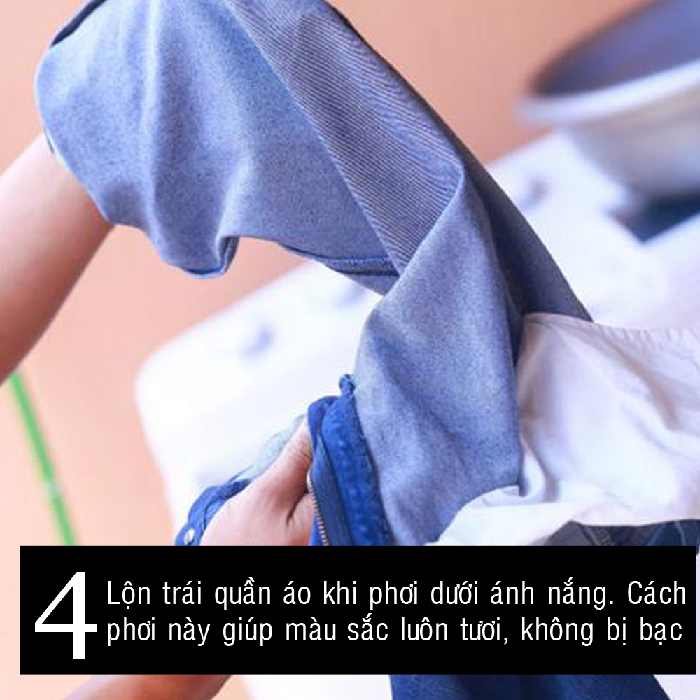 4. Bạn nên lộn trái áo khi phơi dưới ánh nắng mặt trời. Cách phơi này giúp cho màu sắc của áo luôn tươi mới, không bị bạc màu.