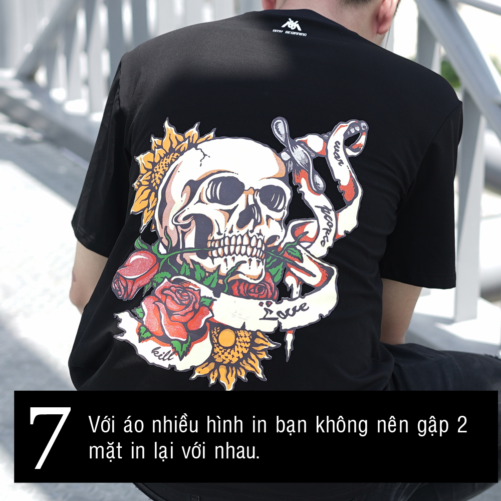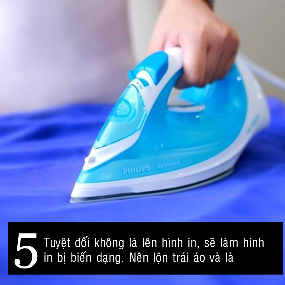 5. Tuyệt đối không là lên mặt hình in, nếu không có thể cháy hình in, hoặc làm hình in biến dạng. Nên lộn trái cái áo và là.