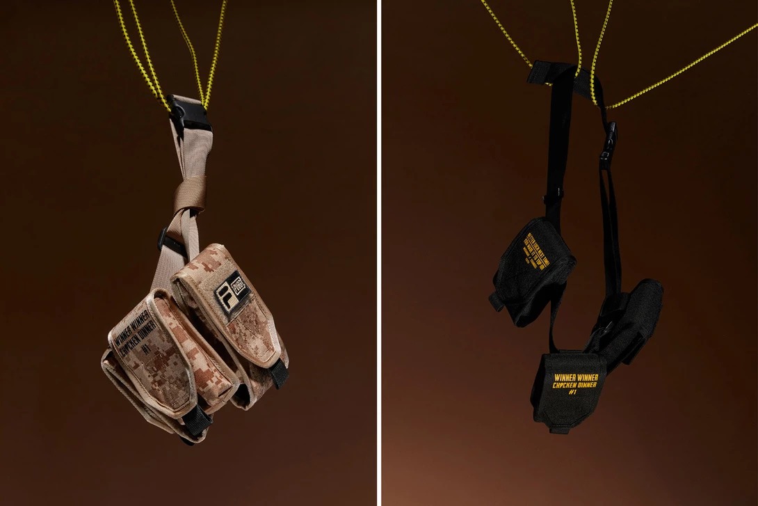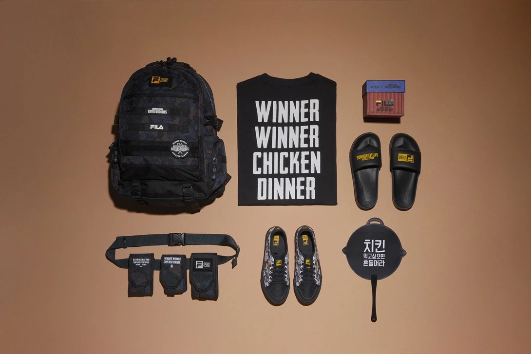 Trong bộ tập này, các item bạn thường bắt gặp trong game nhất như ba lô quân sự, túi thắt lưng, áo phông, giày. Họa tiết camo kĩ thuật số được sử dụng hầu hết trong các thiết kế của Fila xPUBG. Hẳn là các game thủ sẽ rất vui mừng khi mà tìm thấy một cái áo phông có chữ “winner, winner, chicken dinner” ở mặt sau.